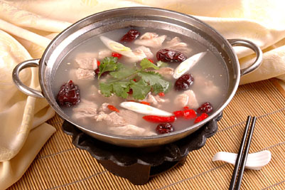 原料:羊肉500克,生地黄15克,当归10克,生姜15克,葱10克,料酒25毫升,酱油10毫升,精盐4克,蒜50克,香油5克,花椒3克,清汤2000毫升,味精3克,白糖30克,油150克。