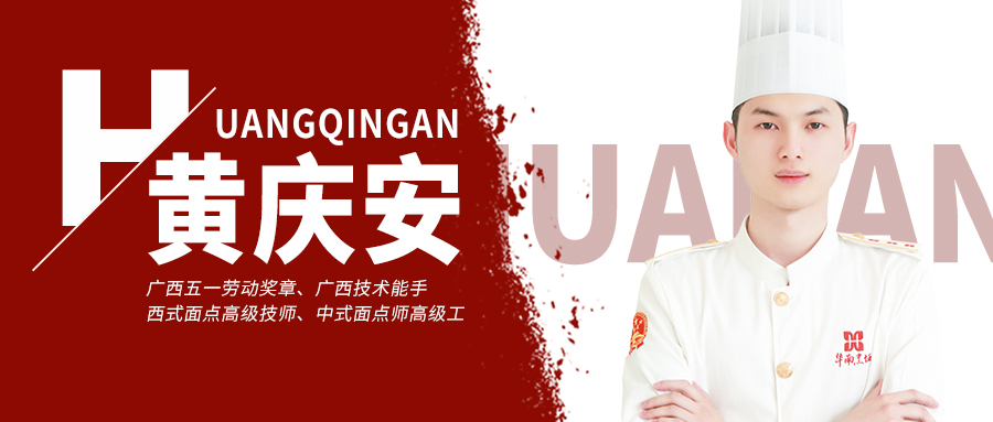名师专访-黄庆安 职称:广西五一劳动奖章、广西技术能手、 西式面点高级技师、中式面点师高级工 擅长:产品研发、技术培训、赛事培训 / 个人荣誉 / 南麦面包创意杯竞赛金奖; 全国西点院校技术交流大赛烘焙金奖; 长