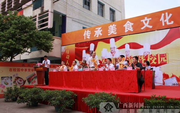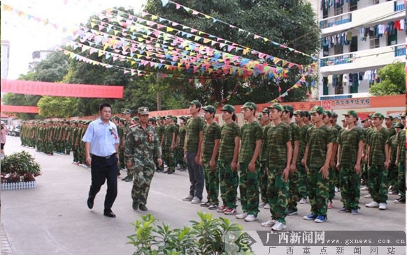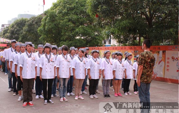 广西华南烹饪学校举办2012新生军训汇演现场。