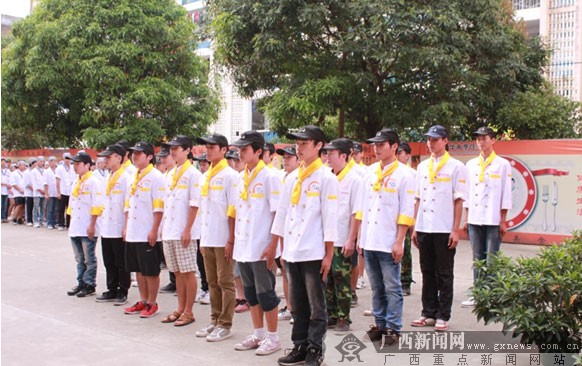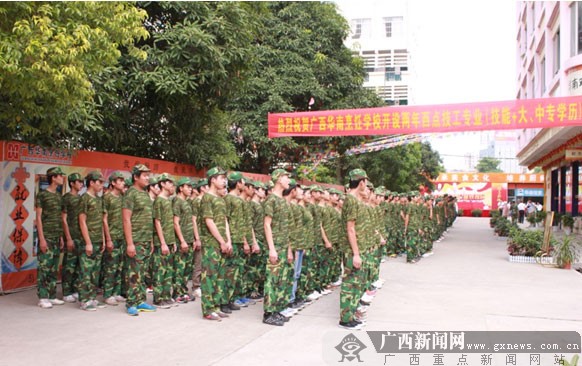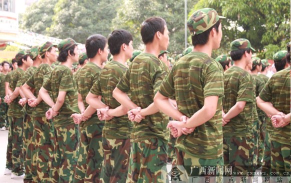 广西新闻网记者报道:时值中秋、国庆到来之际,在金秋送爽的9月,广西华南烹饪学校2012级新生用他们的军训汇演喜迎双节。