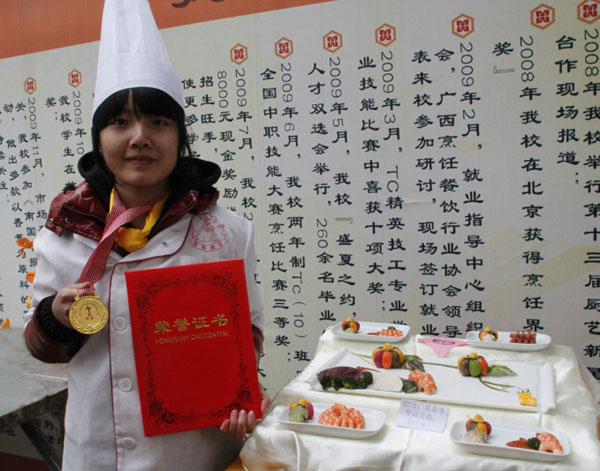 吴荣华,广西华南烹饪学校大厨精英113班的学生,在第19届厨艺新星大赛中,获得拼盘组的特金奖,获得奖金500元。