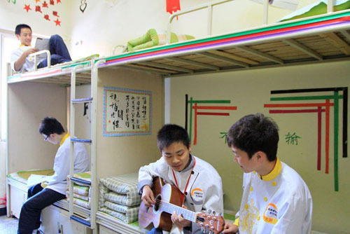 没有上课的时候,同学们若不在操场上嬉戏玩耍,不在自习室温习功课,不在图书馆阅览百书,便会回到寝室享受或安静宁神或热闹快乐的生活。在寝室,既可以一个人挺音乐,习字看书,也可以两个人围坐下棋,也可以多人一起唱歌、谈论生活百态、学习情况与未来理想。环境对人的发展具有重要的影响,广西华南烹饪学校深知寝室对学生们的重要性,班主任经常在寝室组织娱乐活动,有书法比赛、才艺展示,还有寝室联谊等等数十种不同的娱乐活动。这些活动不仅丰富了学生们的校园生活,还帮助同学们建立了相互之间的友谊、培养了他们乐观开朗的生活态度。