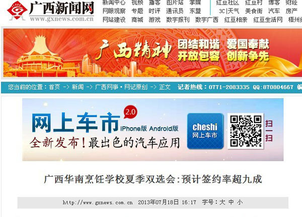 广西新闻网:广西华南烹饪学校夏季双选会:预计签约率超九成