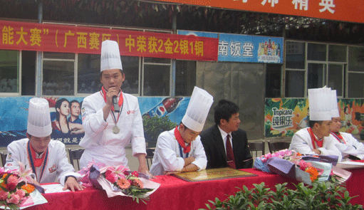 在12月17日的全国饭店技能大赛(广西赛区)上,我校荣获2金2银1铜的优异成绩。12月21日上午9点。获奖选手来到我校明秀校区做汇报演讲。