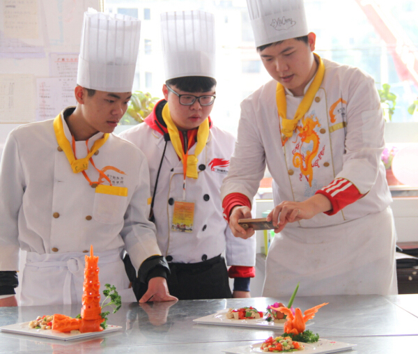 中国烹饪大师黄盛大师观看同学们的作品