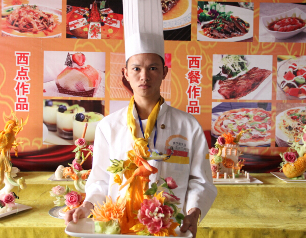 “花王争霸赛”一个更大的舞台更广的视野,同学们为此激动着、兴奋着、努力着,不管是课上还是课下,不管是教室还是宿舍,不管是烹调还是雕刻,都有他们奋斗着的身影。同学们用他们的雕刻刀一点一滴的记录着成长。