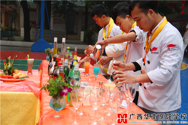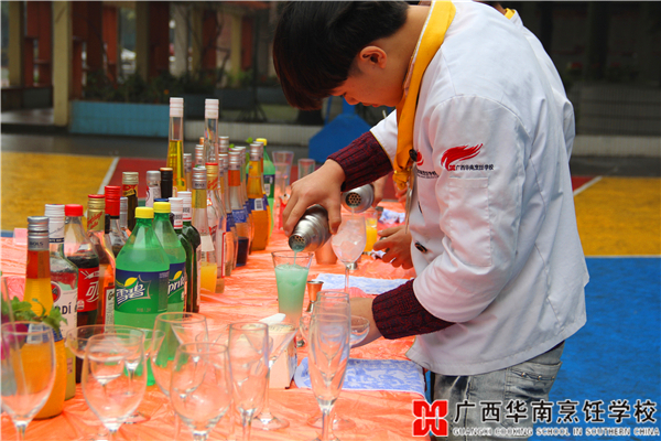 广西华南烹饪学校大厨145班调酒阶段考核