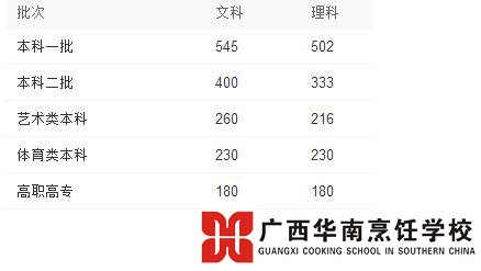 广西2016年普通高等学校招生录取分数线已公布,文科一本545分,较去年提高22分;理科一本502分,较去年提高15分。