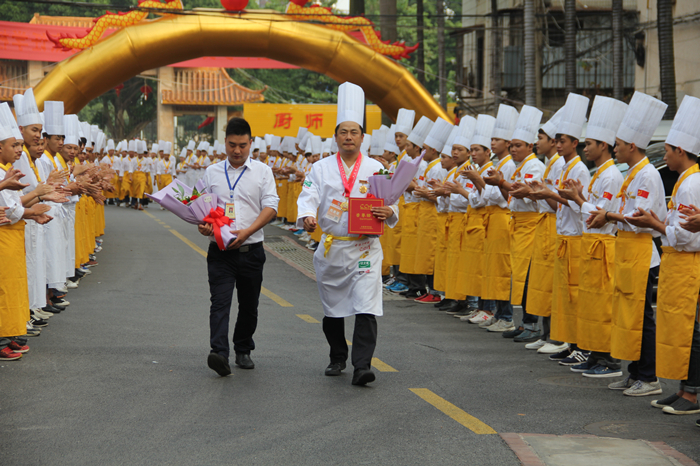 10月24日,在广西华南烹饪学校全体师生的殷切期盼中举行了热烈且隆重的欢迎仪式。 “中华金厨奖”是由中国烹饪协会主办的全国烹饪界最高奖项,每年颁发一次,是为表彰在餐饮管理、烹饪创新、烹饪事业贡献和烹饪教育与理论成果等方面做出突出贡献的单位或个人。广西华南烹饪学校副校长朱伟大师从厨多年,认真汲取国内外厨师培训的先进经验,深化烹饪培训教育模式的改革,使广西华南烹饪学校在厨师培训学校中独树一帜,形成了自己的厨师培训模式和烹饪教育特色,培养了一批又一批的高级技能人才,得到了社会各界人士的信赖,荣获2016年度烹饪行业最高奖项——“中华金厨奖”。