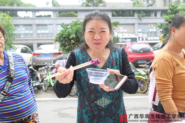 居民们一边学习一边品尝,不时称赞我校的老师和学生精湛的手艺。现场的居民表示今天学到了不少的技巧。