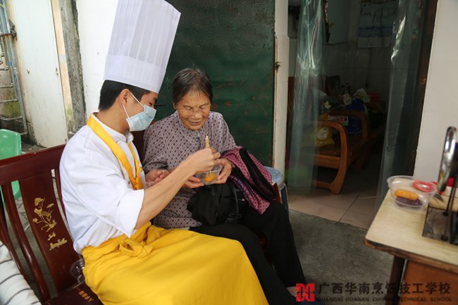 香喷喷的南瓜球和紫薯蛋糕端上了桌,小区里的老人们脸上挂满了笑容,和一群年轻的学生们聊着家常心里乐开了怀。为传承中华民族尊老爱幼的优良品德,引导学生传递正能量,创建和谐文明校园,营造关爱老人的良好道德风尚,近日,广西华南烹饪技工学校联合南宁电视台《新闻社区》栏目在纬武社区开展社区公益爱心活动,为社区居民送去了关心和祝福。
