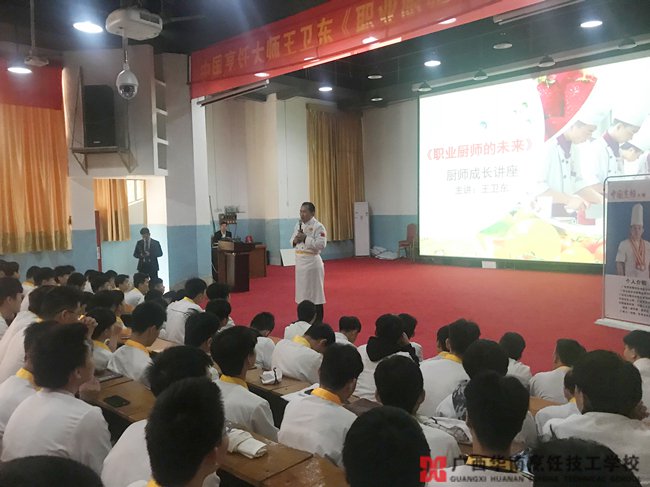 12月11日上午,以《职业厨师的未来》为主题的专题讲座,在我校中尧校区大礼堂开讲。主讲人为我校特聘教师中国烹饪大师王卫东。