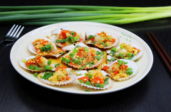 剁椒蒸扇贝,保留了扇贝的鲜甜以及营养成分,原汁原味蒸出的海鲜,增加剁椒开胃,采用蒜、葱、生姜,去腥提鲜,再配点豆豉蒸鱼酱油,蒸十五分钟就有一道无油烟、鲜美的海鲜出锅。 主料:扇贝600克。 辅料:橄榄油2ml